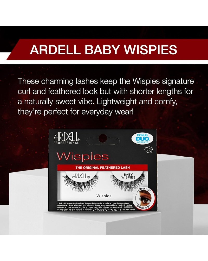 β Transform your eyes with naturally captivating lashes! Ardell Baby Wispies deliver lightweight volume, a delicate length, and perfectly crisscrossed fibers that blend beautifully with your own lashes for an irresistibly soft, fluttery effectβday or night.