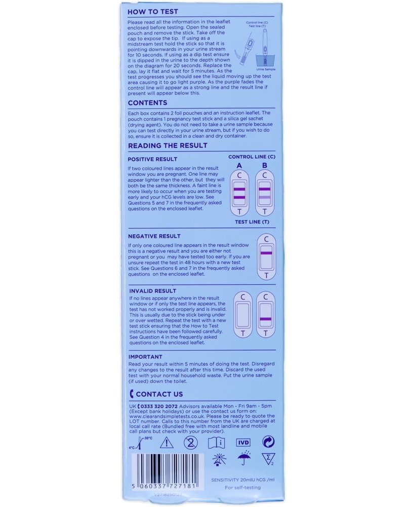 β Experience peace of mind with easy-to-use, accurate pregnancy testing! The Clear & Simple Pregnancy Test Sticks deliver quick, clear results in the comfort of your home. Featuring an ergonomic design and intuitive function, these tests offer simplicity and confidence when you need it most.