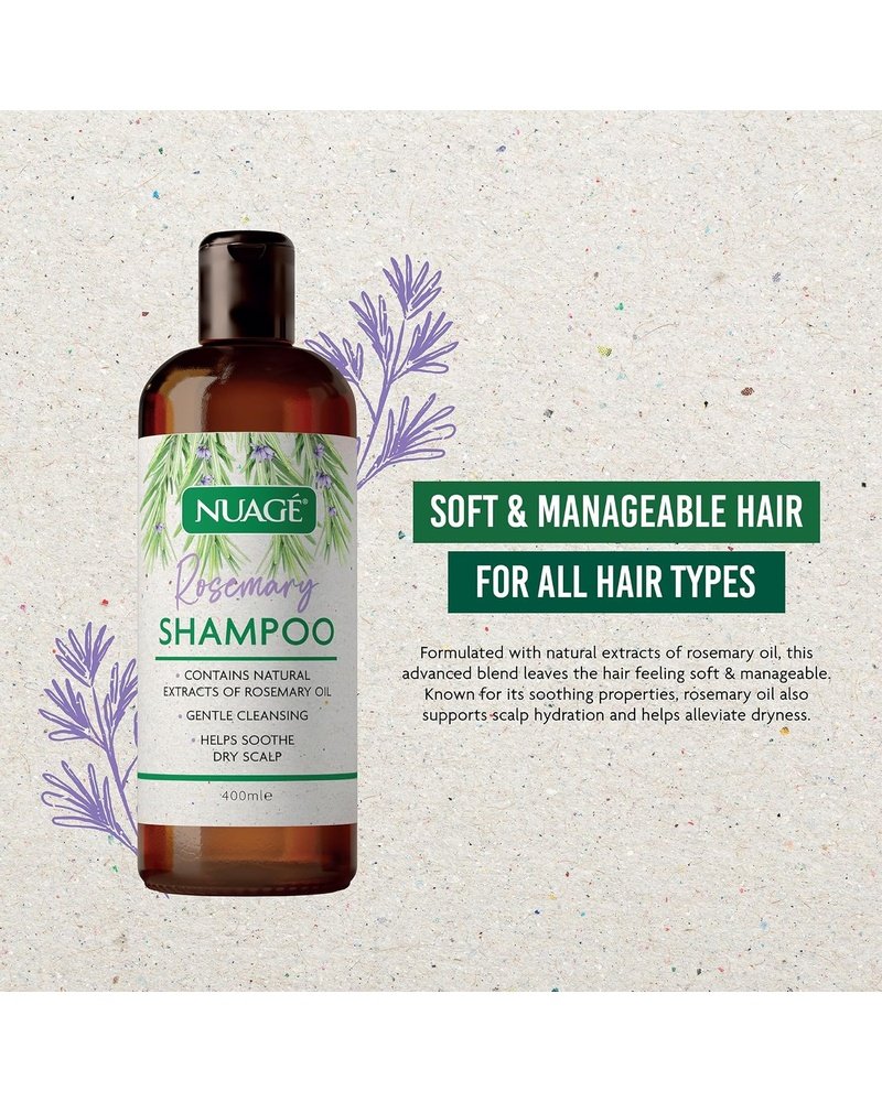 Nuage Rosemary Shampoo – Contains Rosemary Extract and Proteins | Help Soothe Dry Scalps with Gentle Cleansing – Suitable For All Hair Types (400ml Bottle)