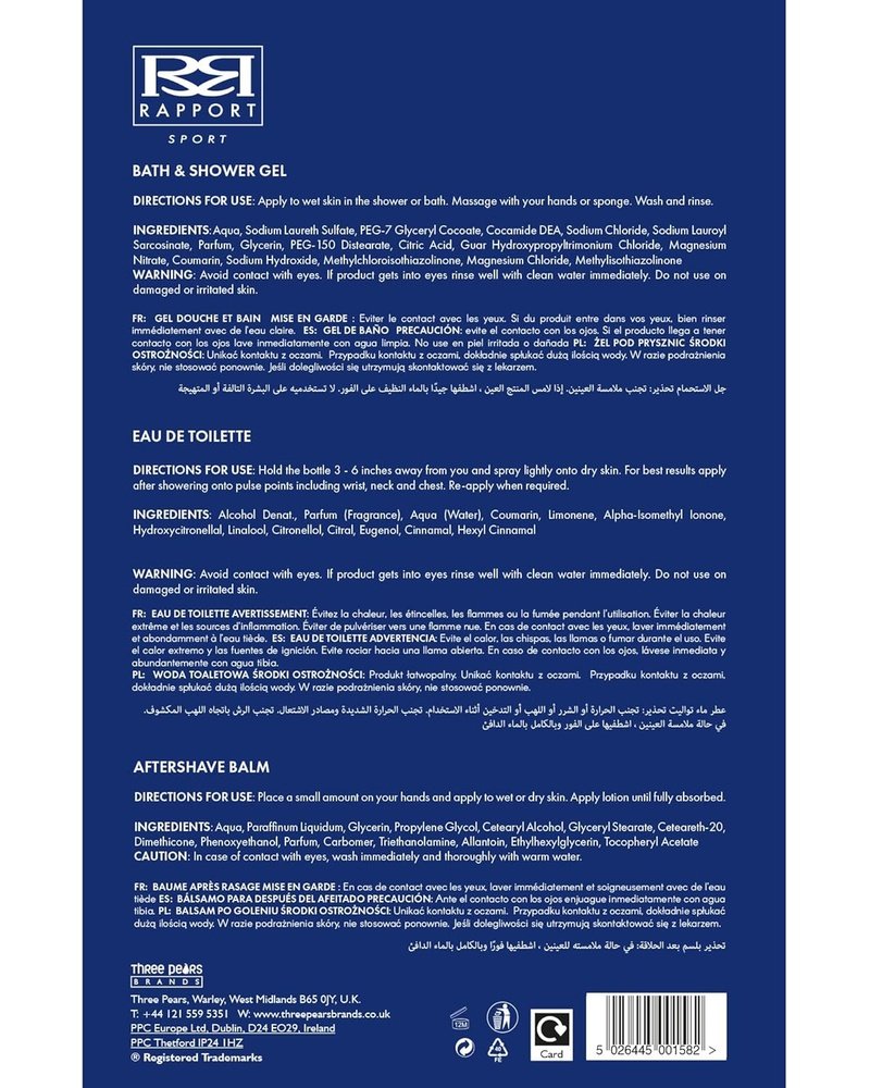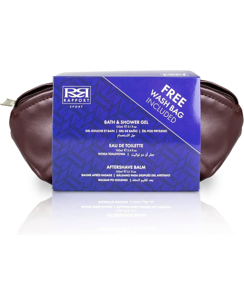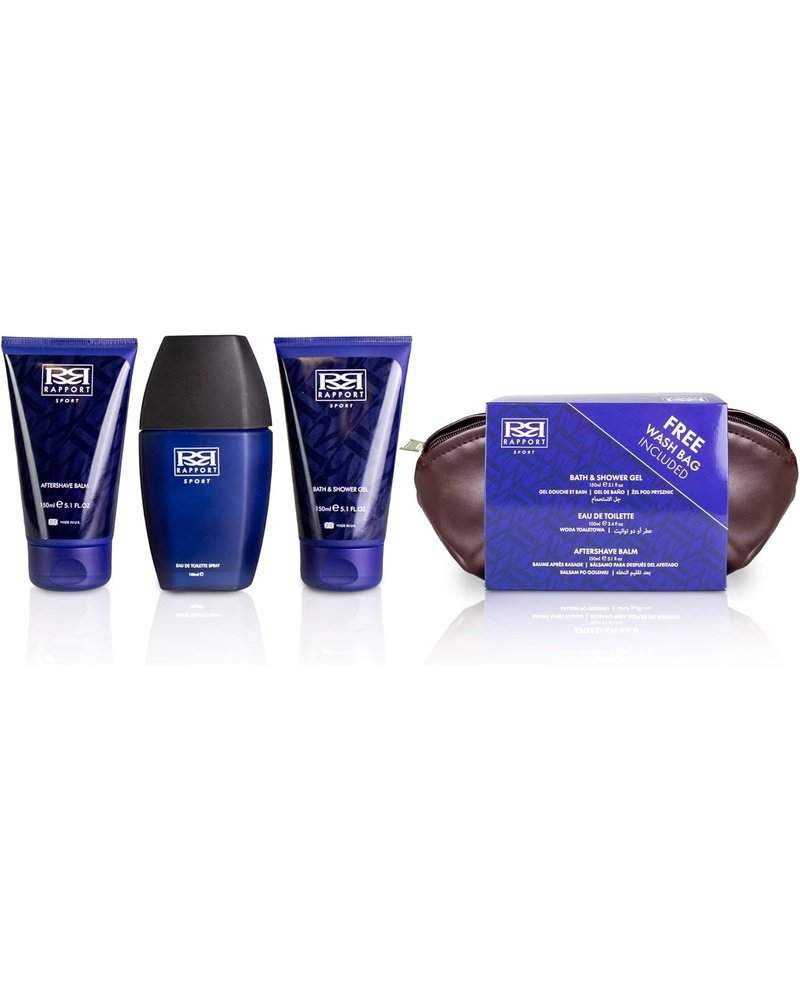 β Upgrade your daily routine! The Rapport Sport Wash Bag Gift Set includes everything you need to feel fresh, invigorated, and ready for whatever the day brings. Featuring a bold Eau De Toilette, revitalizing shower gel, and soothing aftershave balmβall presented in a convenient, travel-ready wash bag.